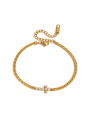 18k Gold Plated Stainless Steel Round Zircon Cross Waterproof Hypoallergenic